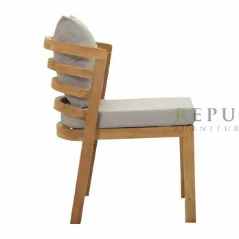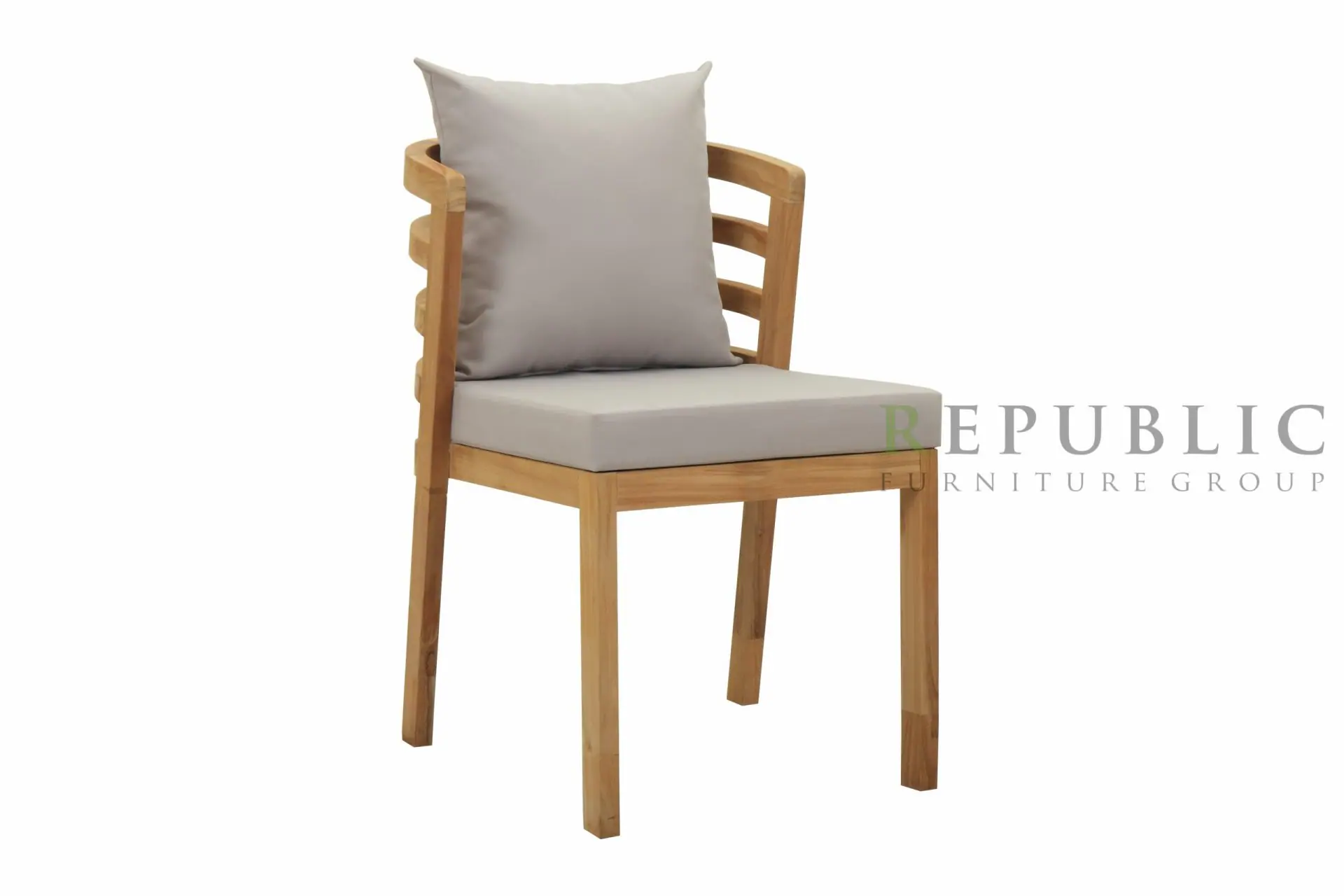 The Teak Outdoor Armless Dining Chair Vista Dining by Republic Furniture is designed to bring refined comfort and timeless elegance to your outdoor dining space. Crafted from solid Jepara teak wood and paired with a sunproof cushion, this chair offers a perfect balance between durability, functionality, and minimalist aesthetics.