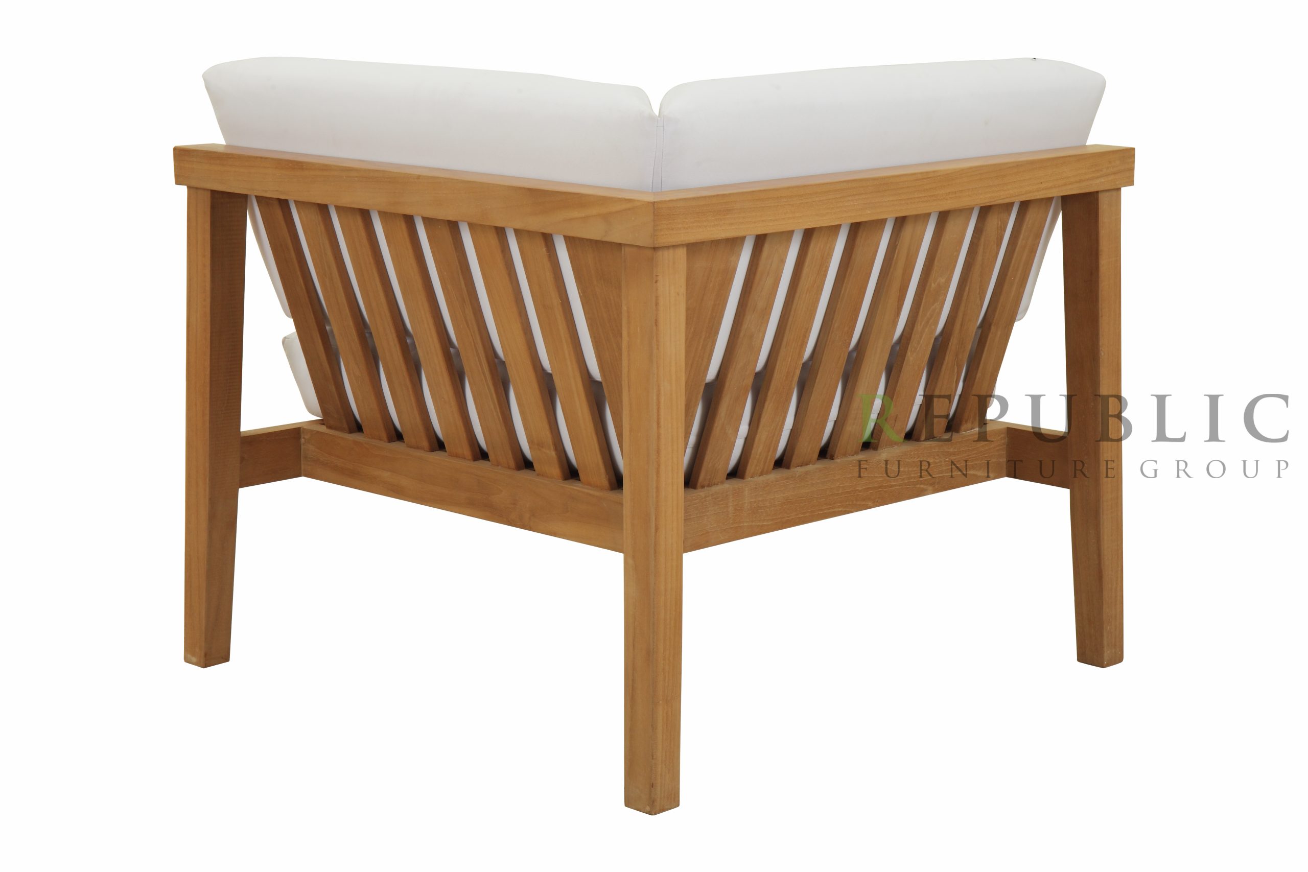 The Teak Outdoor Corner Deep Seating Aurora by Republic Furniture is a refined corner sofa designed to elevate outdoor relaxation with comfort and timeless style. Crafted from solid Jepara teak wood and paired with plush sunproof cushions, this single-seat deep seating unit offers exceptional durability and a cozy lounging experience.