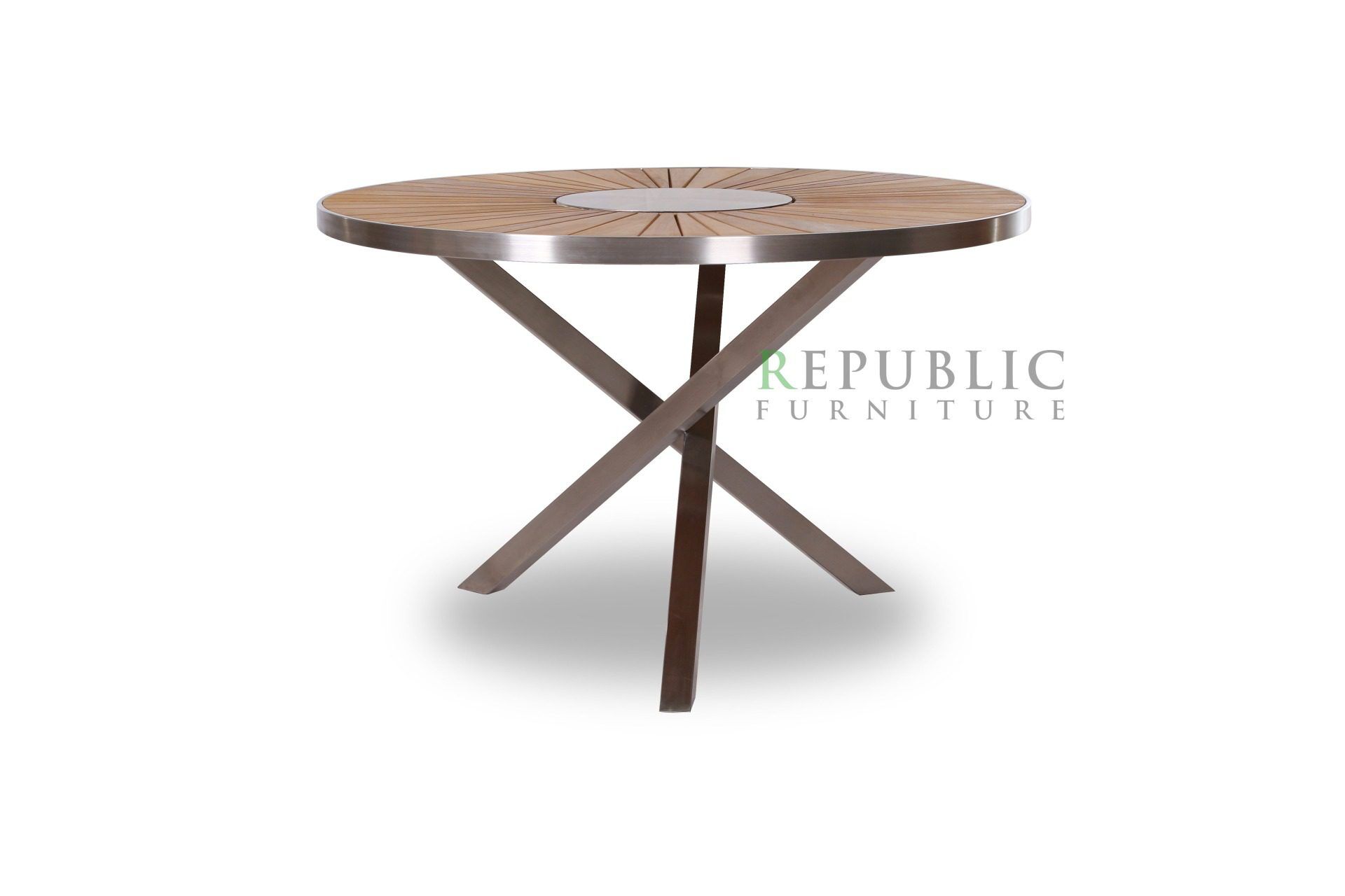 The Teak Outdoor Rounded Dining Table Sean by Republic Furniture is a refined outdoor dining table designed to bring warmth and elegance to any open-air setting. Crafted from solid teak wood sourced from Jepara and combined with durable stainless elements.