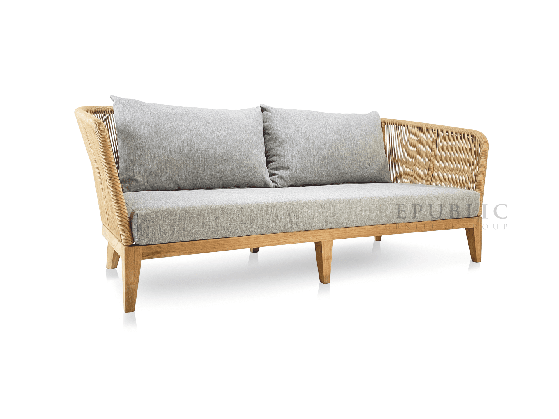 The Teak Outdoor Love Seat Deep Seating Anabela by Republic Furniture is a refined two-seater outdoor sofa designed to deliver superior comfort with a modern, natural aesthetic. Crafted from solid Jepara teak wood and paired with sunproof cushions, this deep seating love seat blends durability with elegant design.
