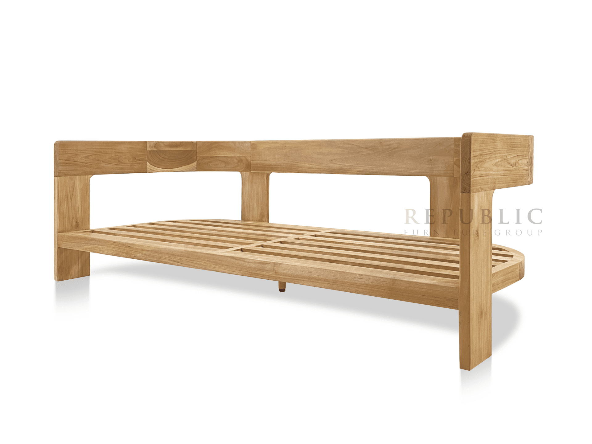 The Teak Outdoor Love Seat Deep Seating Gala by Republic Furniture is a refined two-seater outdoor sofa designed for superior comfort and timeless elegance. Crafted from solid Jepara teak wood and paired with plush sunproof cushions, this deep seating love seat offers a perfect balance between durability and relaxation.