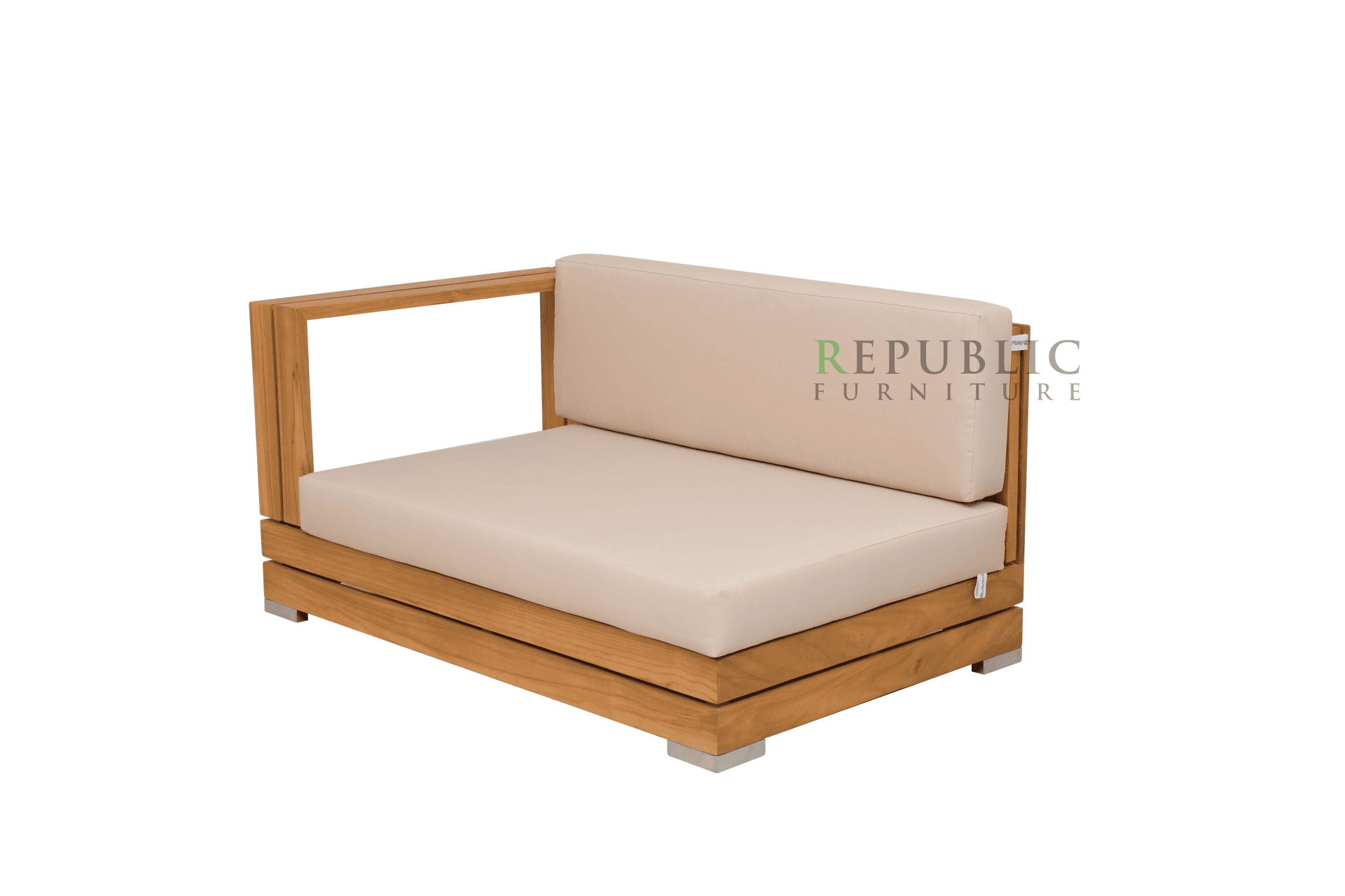 Teak Outdoor Right Deep Seating Korsika by Republic Furniture is a premium single-seat outdoor sofa designed to deliver superior comfort and timeless elegance. Crafted from solid Jepara teak wood and finished with a natural fine sanded touch, this right-side deep seating sofa highlights the natural beauty of teak while ensuring long-lasting durability.