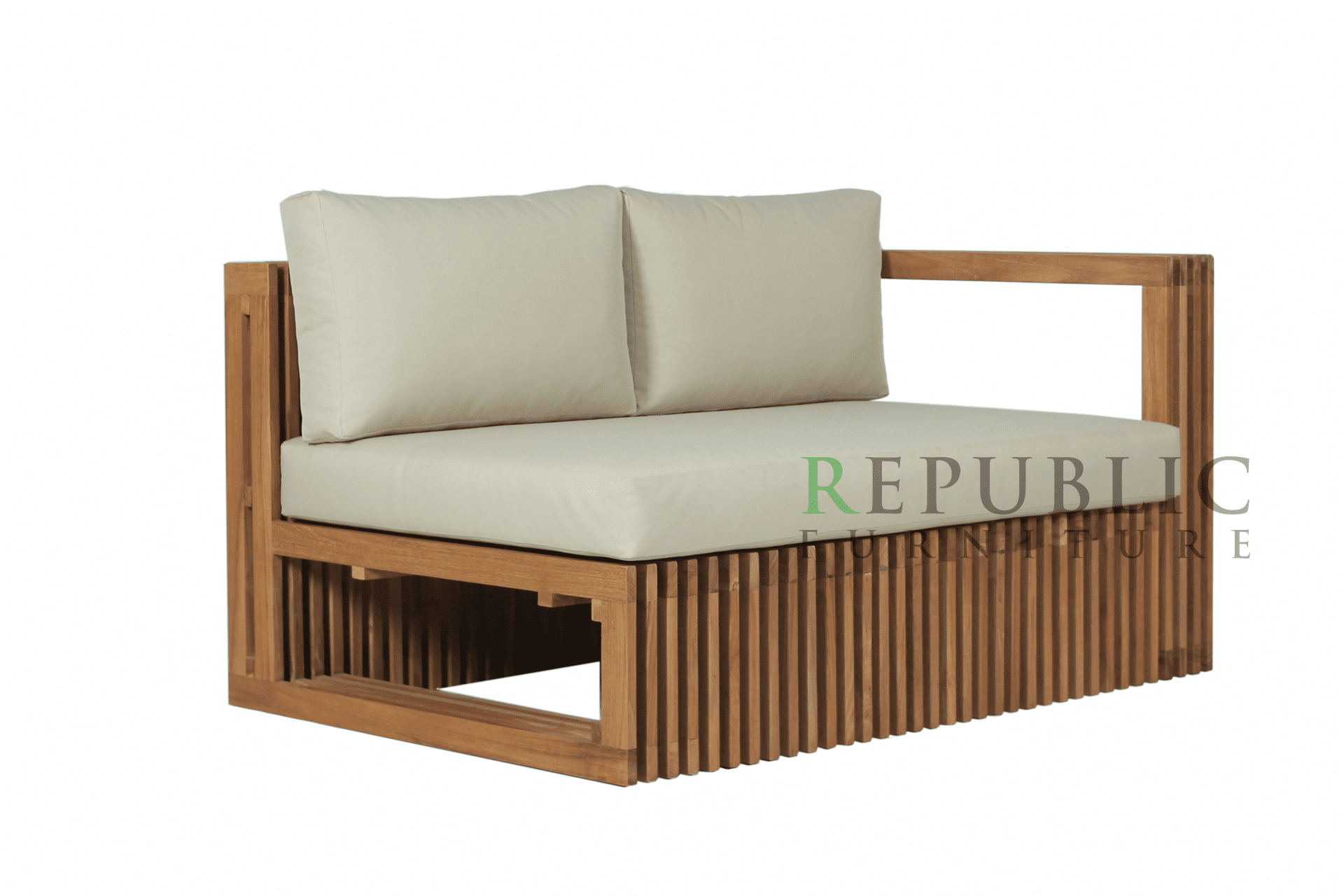 The Teak Outdoor Right Seat Deep Seating Geneve by Republic Furniture is a refined outdoor seating solution designed for both comfort and flexibility. Crafted from solid Jepara teak wood and paired with premium sunproof cushions, this right-side deep seating sofa delivers a relaxed lounging experience with timeless natural aesthetics.