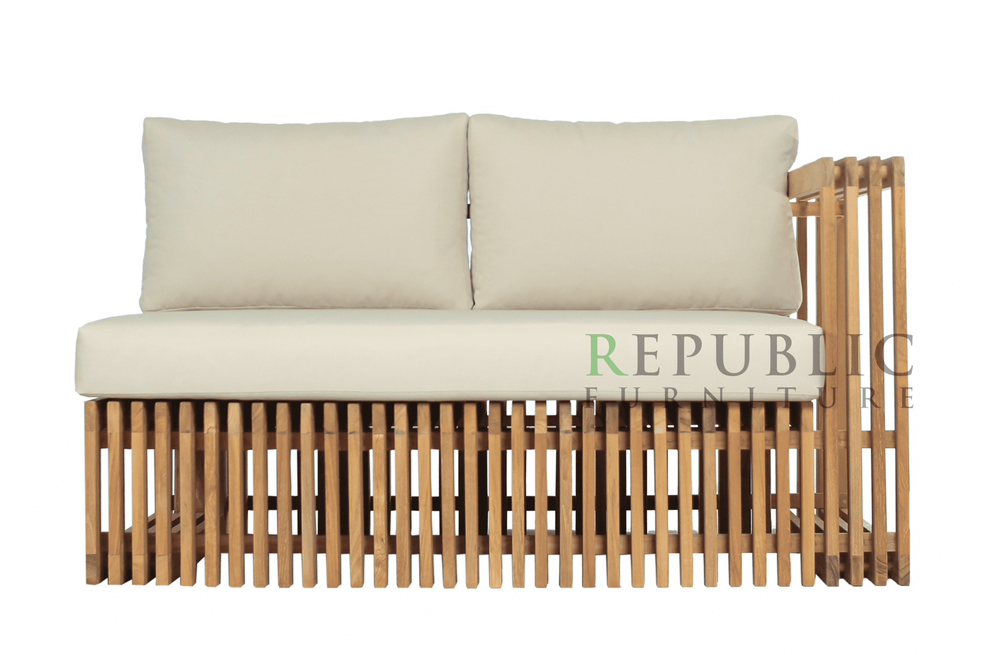 The Teak Outdoor Right Seat Deep Seating Geneve by Republic Furniture is a refined outdoor seating solution designed for both comfort and flexibility. Crafted from solid Jepara teak wood and paired with premium sunproof cushions, this right-side deep seating sofa delivers a relaxed lounging experience with timeless natural aesthetics.