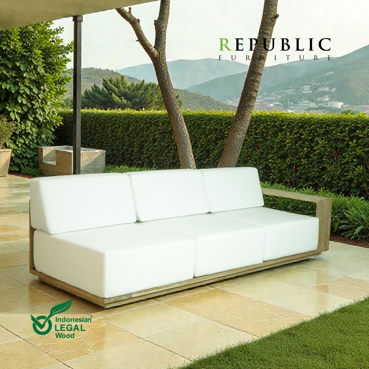 The Sereno Teak Outdoor Sofa – 3-Seater, Left Arm by Republic Furniture is a premium outdoor seating solution designed for both comfort and durability. Crafted from high-quality solid teak wood, this deep seating sofa offers a spacious and relaxing experience for outdoor living.