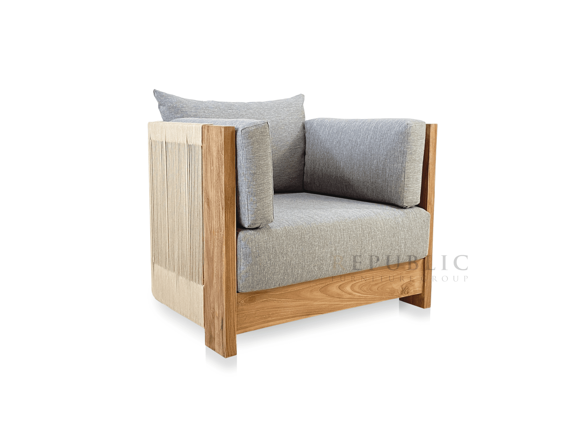 The Teak Outdoor Single Deep Seating Dama by Republic Furniture is a refined outdoor deep seating sofa designed for ultimate comfort and timeless style. Crafted from solid Jepara teak wood and paired with sunproof cushions, this single-seat sofa offers a relaxed seating experience while maintaining durability for outdoor use.