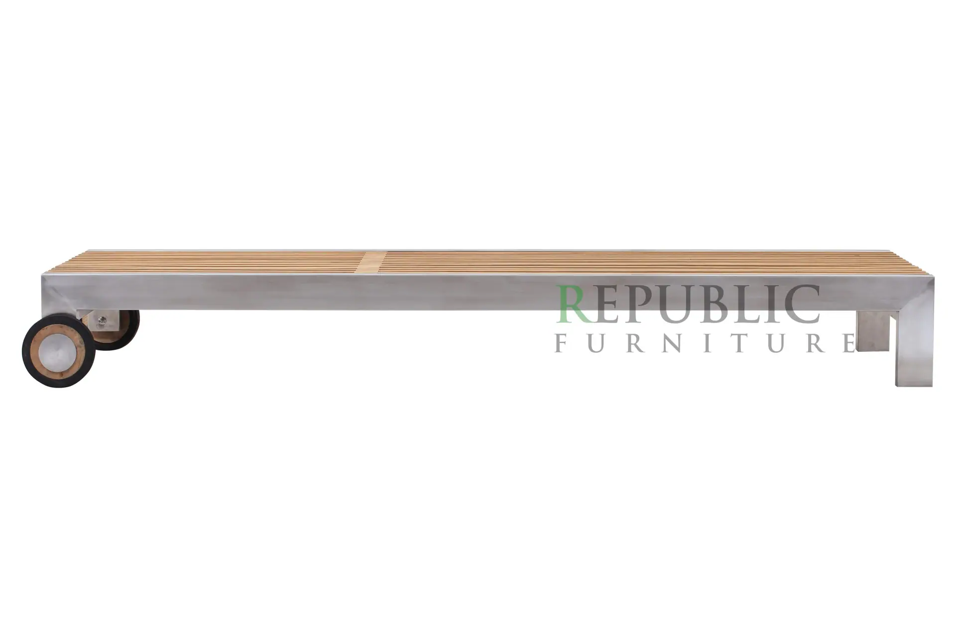 The Teak Outdoor Sun Lounger Circa by Republic Furniture is designed to elevate your outdoor relaxation experience with a clean, modern silhouette and premium natural materials. Crafted from solid Jepara teak wood and combined with durable stainless accents, this sun lounger offers both visual elegance and long-lasting performance.