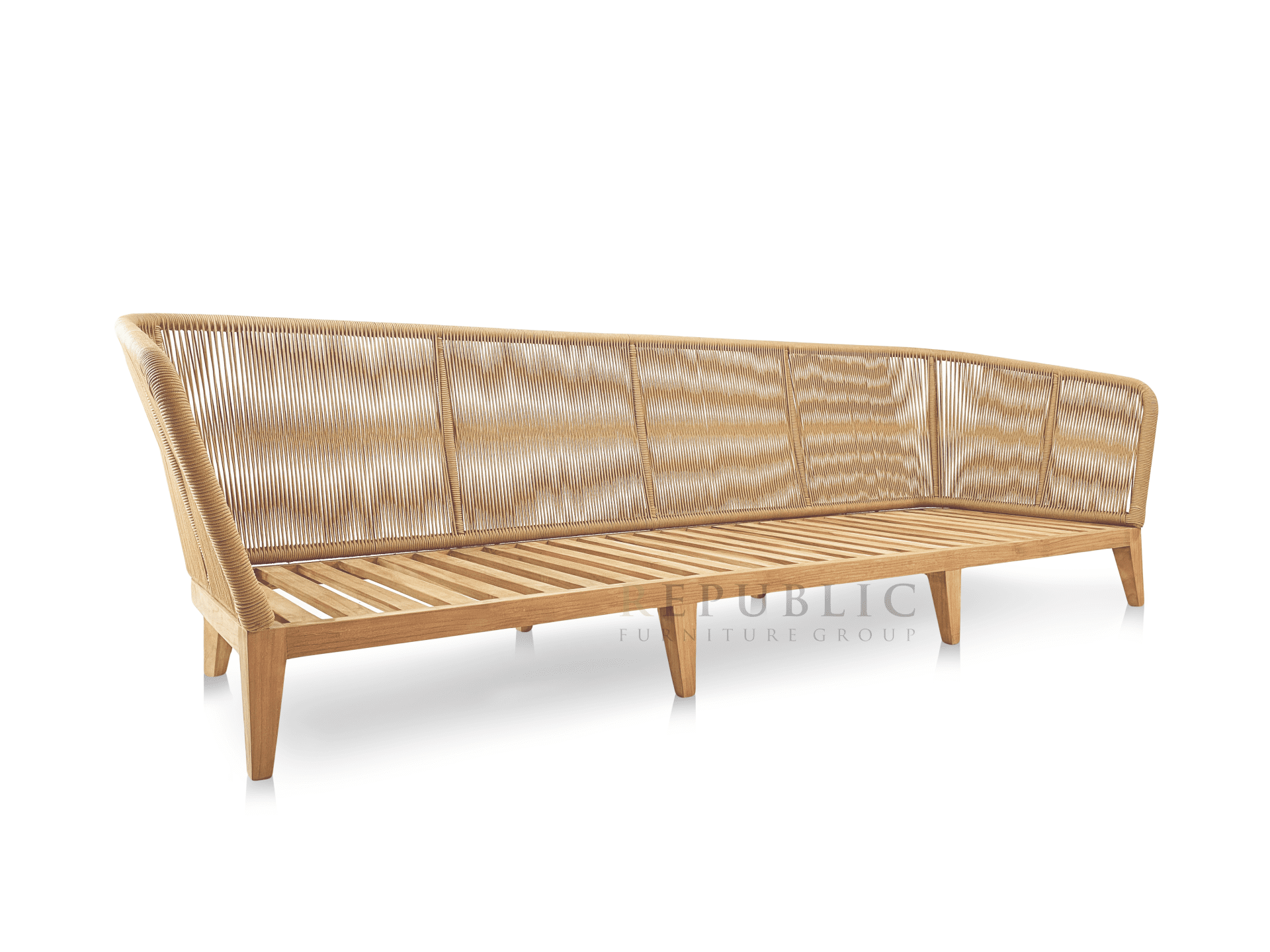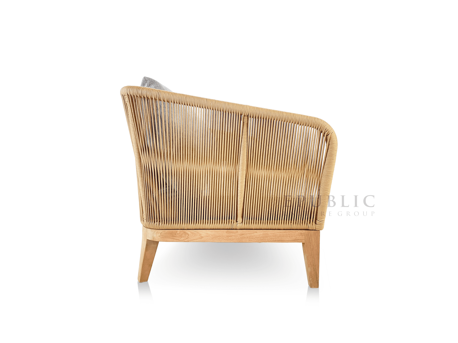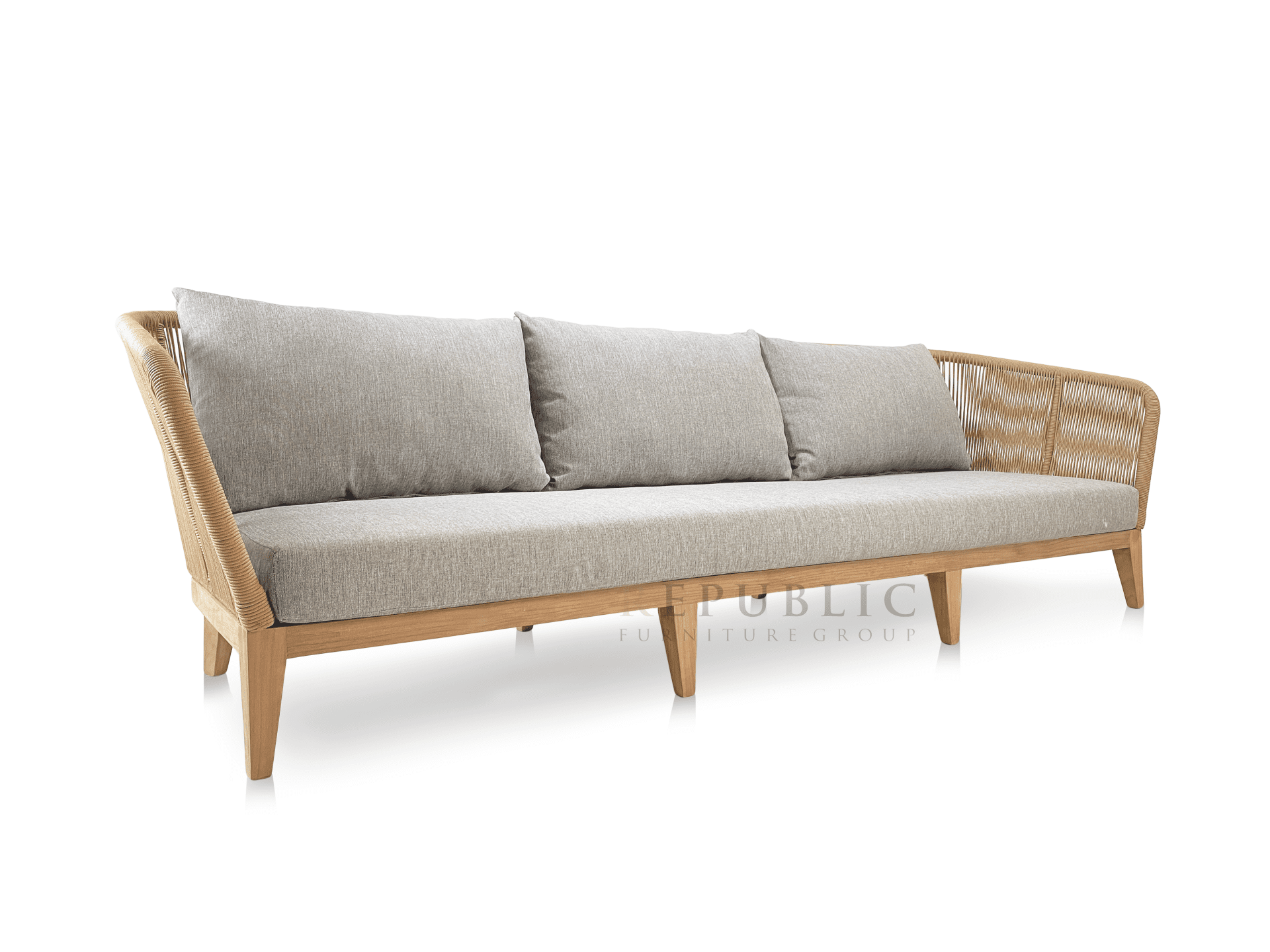 The Teak Outdoor Three Seat Deep Seating Anabela by Republic Furniture is a refined outdoor sofa designed for comfort, durability, and timeless style. Crafted from solid Jepara teak wood and combined with a contemporary rope sofa design, this three-seat deep seating offers generous space for relaxation.