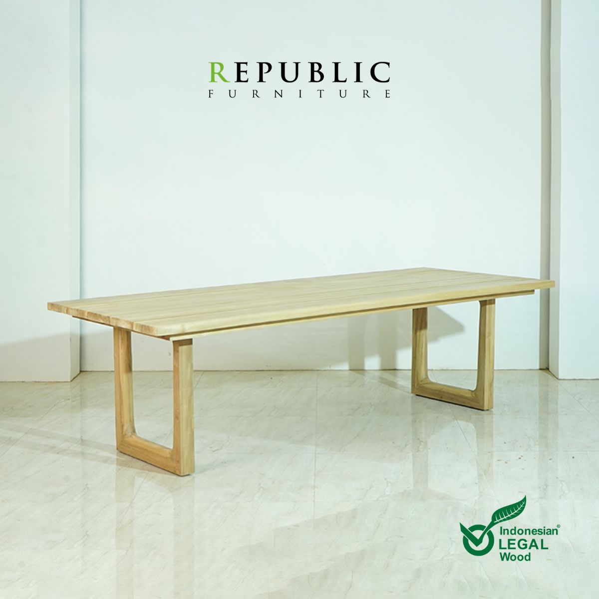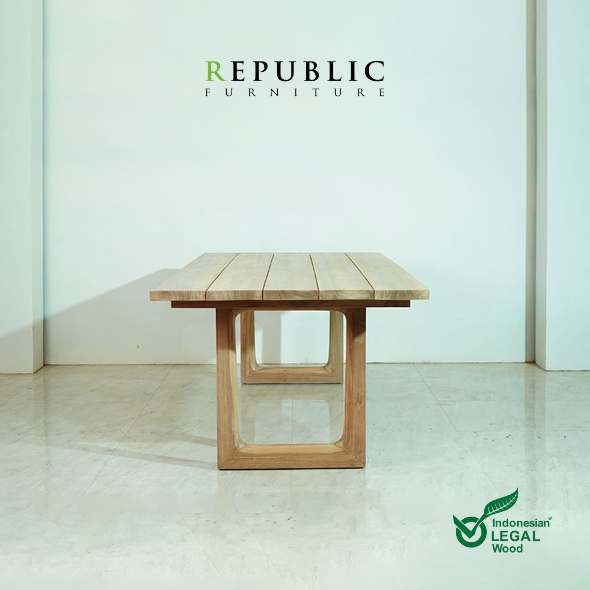Valle Teak Outdoor Dining Table made from solid teak wood. Durable, elegant, and perfect for outdoor dining spaces. Crafted in Jepara, Indonesia.